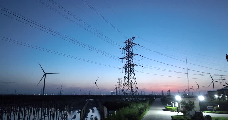 - 架空电缆,输电塔,建筑,天空,塔,其他场景,地标建筑,自然景观,旅游,地理,霞,地平线,日出日落,白天QM159961094