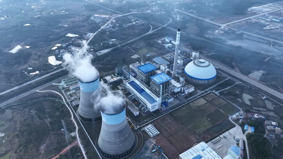 - 航拍,俯视图,城市全景,都市区,其他场景,地标建筑,旅游,地理,工业区,火箭,交通工具,工业,工作学习场所,市区,发电厂,蓝色,颜色,其他事物,火力发电站QM159940109