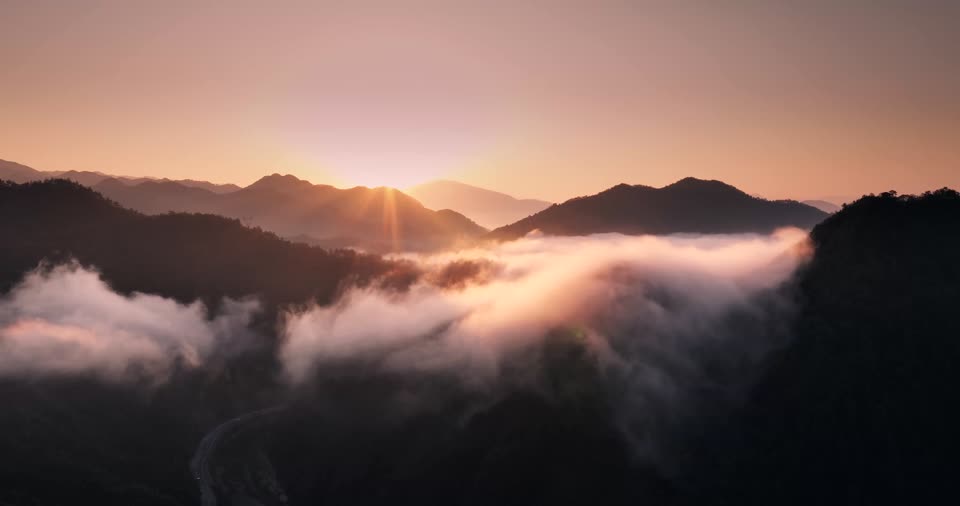 - 日出,山中避暑地,黄昏,地平线,朝霞,霞,山脉,日出日落,山,雾,山峰,丘陵,山脊,霾,天空,自然景观,其他场景,旅游,地理,晚上,云QM160068803