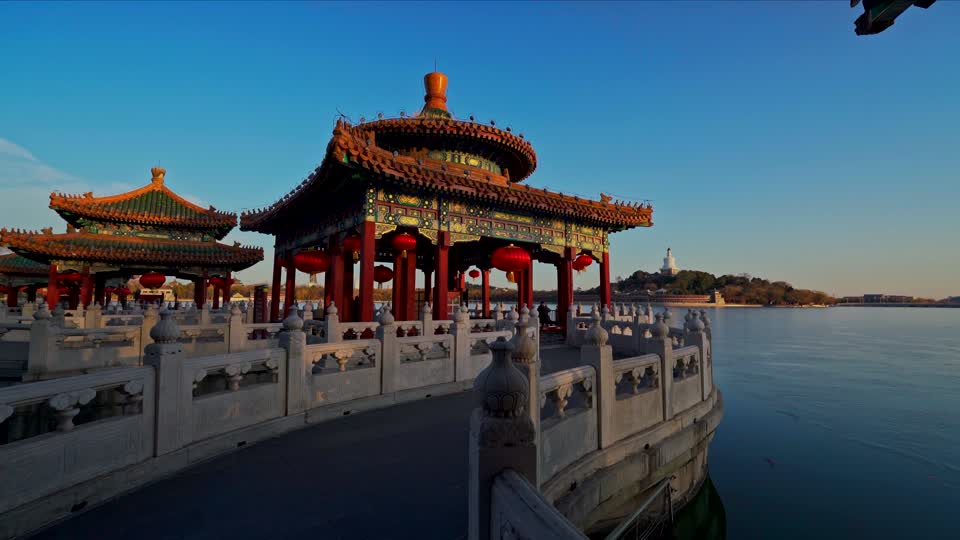 - 北京,北海公园,北海,白塔,湖泊,湖面,树林,冰面,蓝天,白云,公园,古代建筑,标志性建筑,自然风光,城市建筑,建筑,自然,无人,户外,白天,牌楼,石狮子,积翠,牌匾,永安桥,延时QM160097944