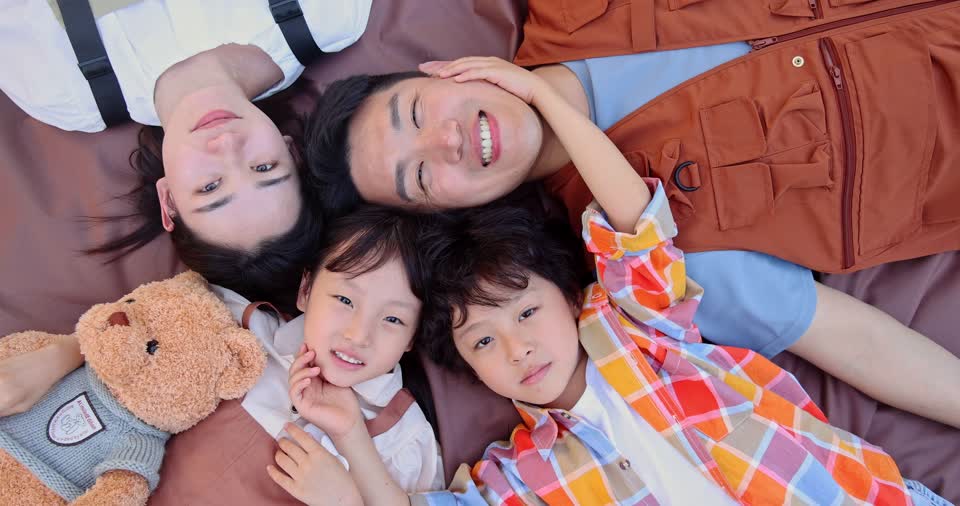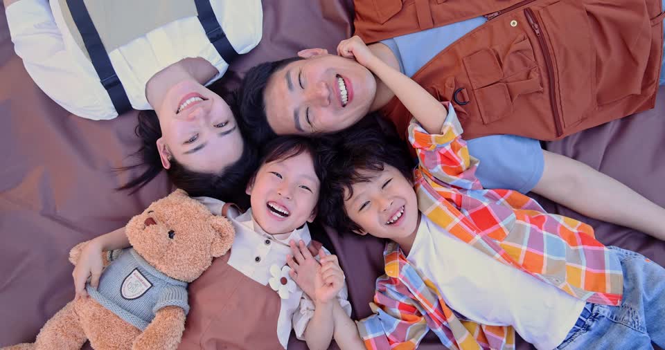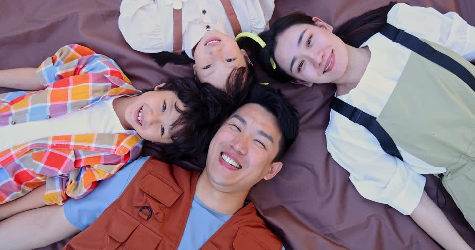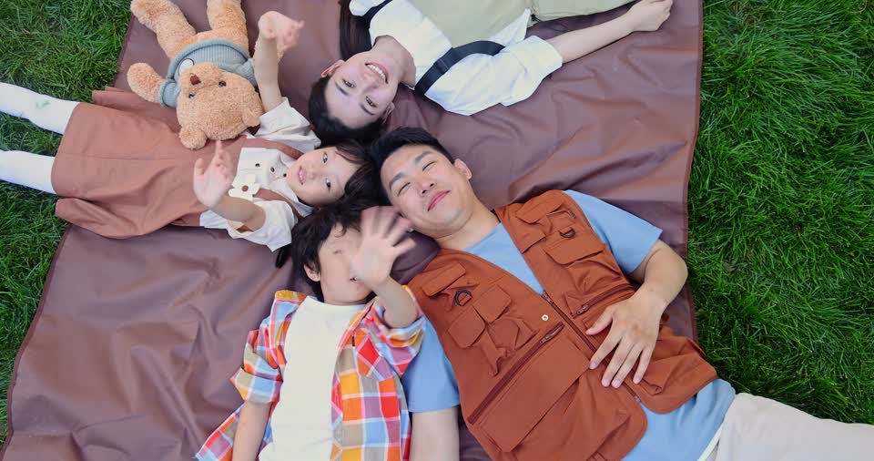- 爸爸,妈妈,小男孩,小女孩,兄妹,开心,微笑,招手,挥手,看镜头,躺着,头对头,露营,野餐,草地,大自然,帐篷,儿童,玩耍,家庭,二胎,亲子,陪伴,快乐,大笑,晴天,游玩,多人,户外,慢镜头QM160095545