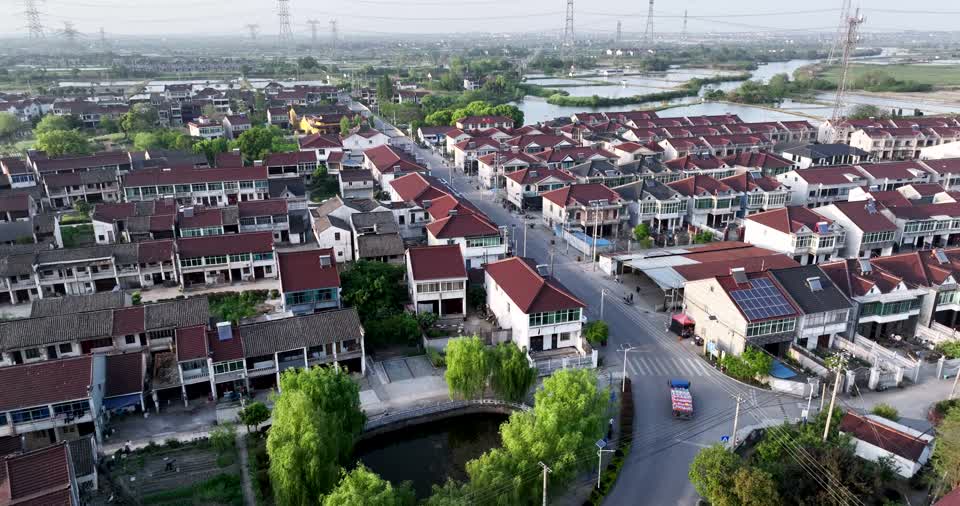 - 镇,市郊,航拍,都市区,住宅区,市区,邻近街区,城市,俯视图,房子,城市风光,城市全景,其他场景,生活场所,地标建筑,旅游,地理,植被QM159982190