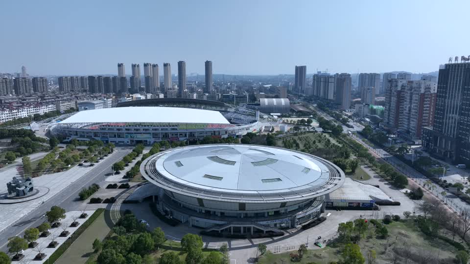 - 建筑,体育场地,航拍,体育场,枢纽站,俯视图,都市区,市区,地标建筑,运动场地,其他场景,交通场所,旅游,地理,交叉路口,中国杭州奥体博览城,室内运动场QM159963054