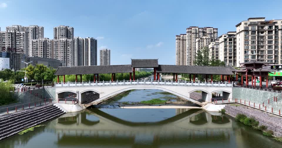 - 都市区,城市,建筑,拱桥,桥,其他场景,地标建筑,交通场所,旅游,地理,成都廊桥,拱形,人行天桥,树QM160065265
