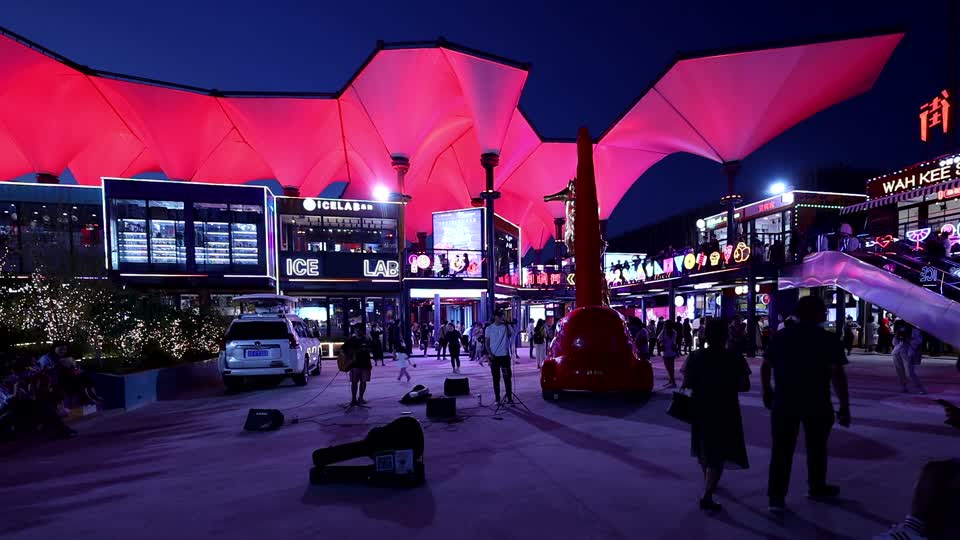 - 夜晚,建筑,自然景观,地标建筑,旅游,地理,其他场景,粉色,颜色,其他事物,霓虹灯,街道,交通场所,品红色,都市区,艺术品,大都市,镇,音乐会,娱乐,市区,美国EMP博物馆,舞台,内部场景QM160104896
